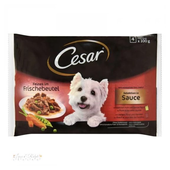 A CESAR egyformán ízletes szószos vagy zselés receptek könnyen használható tasakban kaphatók, tökéletes kiszerelésben a zamatosan friss ételekhez. Önmagában vagy száraztáppal együtt fogyasztva élvezetessé teszi az étkezéseket kutyája és az Ön számára egyaránt. Mivel minden CESAR recept egészséges és teljes értékű, ezért olyan gyakran adhat belőle kutyájának, amilyen gyakran csak akar.