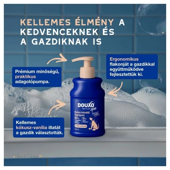 A DOUXO® Skin & Coat SPA vedléscsökkentő sampon kifejezetten kutyák bőrének és szőrzetének kíméletes ápolására készült. Gyengéd tisztító formulája segít eltávolítani a szennyeződéseket, miközben támogatja a szőrzet ápoltságát.