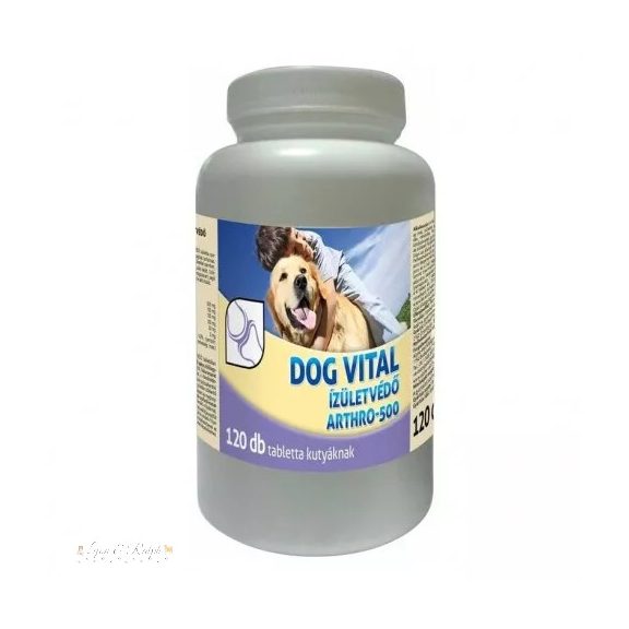A DOG VITAL ARTHRO500 tablettában található Perna canaliculus (új-zélandi ajakos zöldkagyló) a kötőszövetek természetes alkotóit, hialuronsavat és glükózamino-glikánokat tartalmaz, a chondroitin-szulfát az izületekben található muko-poliszaharidok közé tartozik, a cápaporc erőteljes gyulladás-csökkentő hatású, anyagai erősítik az immunrendszert és meghosszabbítják zöldkagyló hatását. A metil-szulfanil-metán (MSM) a kollagén egyik alapanyaga, mérsékli a fájdalmat, csökkenti az izzadmány mennyiségét, helyreállítja a sejtfal rugalmasságát. A C-vitamin gátolja a káros oxidatív folyamatokat, a mangán-ionok pedig .nélkülözhetetlenek az egészséges porc, illetve az izületi felületek képződéséhez.