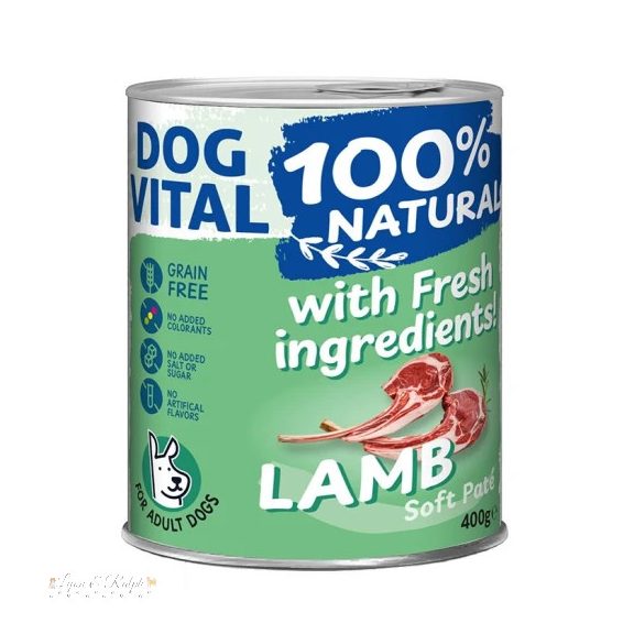 DOG VITAL 100% NATURAL konzerv – PUHA PÁSTÉTOM BÁRÁNYHÚSSAL. Gabonamentes.