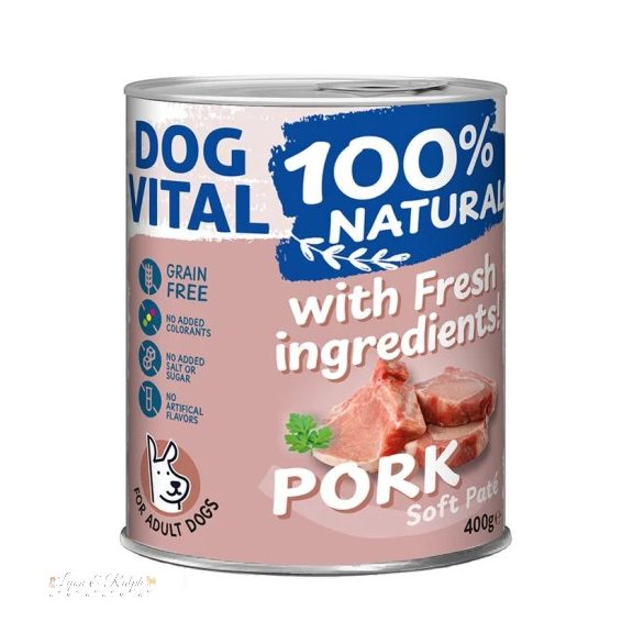 DOG VITAL 100% NATURAL konzerv – Puha pástétom sertéshússal. Gabonamentes.