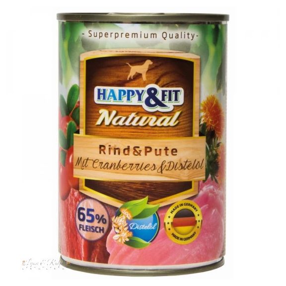 HAPPY FIT NATURAL FELNŐTT KUTYÁKNAK MARHAHÚSSAL, PULYKAHÚSSAL, VÖRÖSÁFONYÁVAL, sáfrányos szekliceolajjal
