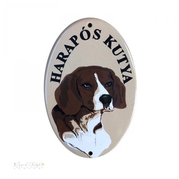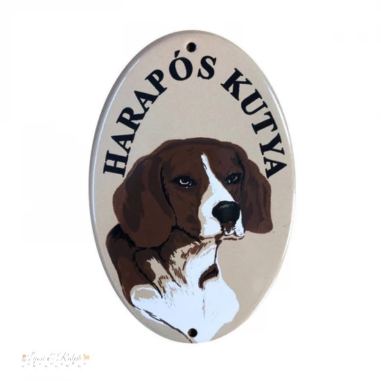 Zománcozott fém tábla tökéletes választás, ha stílusosan szeretnéd jelezni a kutyád jelenlétét. A tábla több féle grafikával kapható, így biztosan találsz olyat, ami illik a házadhoz és a kutyádhoz.