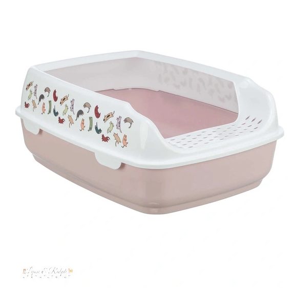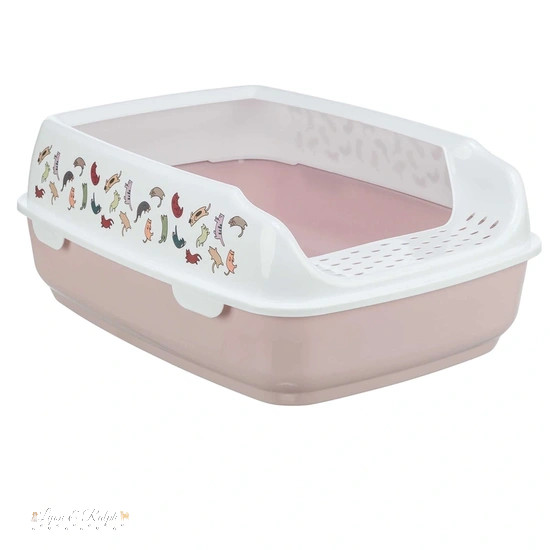 .Macska Alomtálca Delio, Peremes, Nyomott mintával, 38 × 20 × 50 cm, Világos akáclila/Fehér
