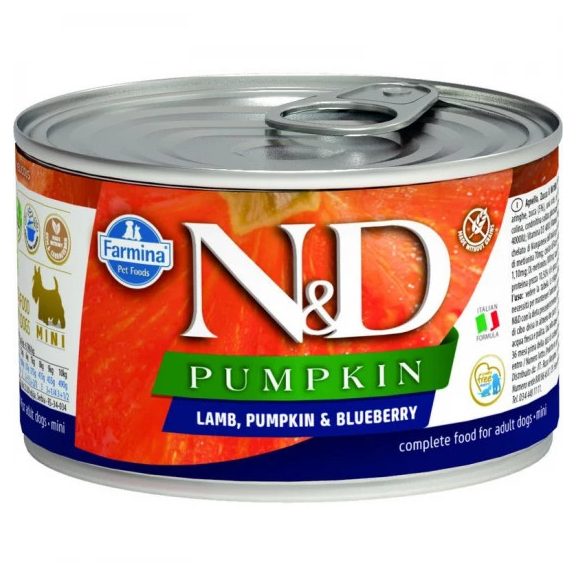N D Sütőtökkel - Bárány, sütőtök és áfonya receptúra. Teljes értékű nedves eledel, kistestű felnőtt kutyák részére.