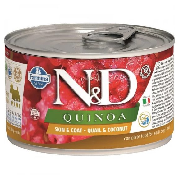 N D Quinoa Dog konzerv Skin coat fürj kókusz adult mini