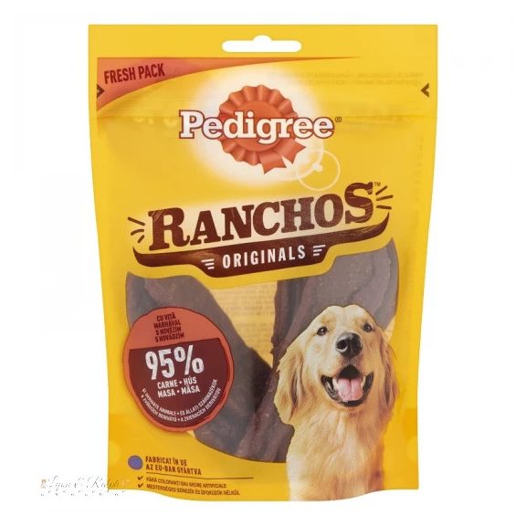 A Pedigree Ranchos Marhával snack 95% hússal és állati melléktermékkel készült puha jutalomfalat. Gondosan szárított, igazán ízletes és finom illatú.