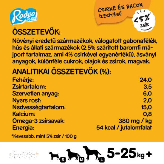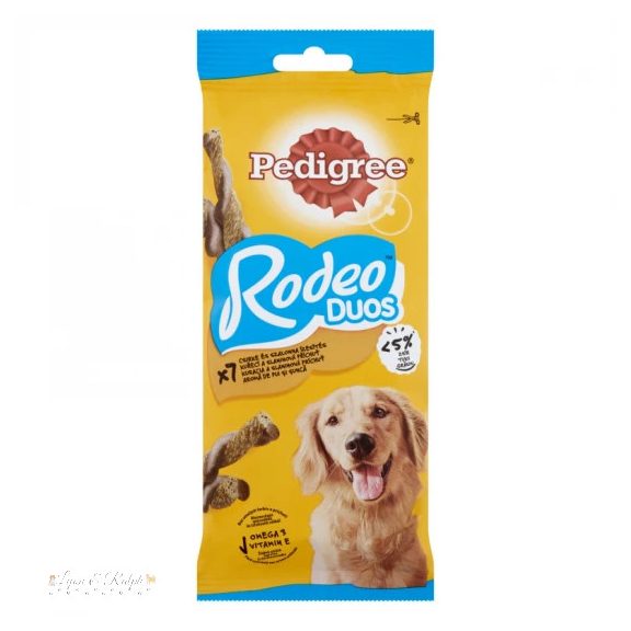 Egyedi csavart alakjának köszönhetően nagyszerű a rágcsáláshoz és lehetővé teszi a játékot is, azon pillanatokat, amikor a kutya közelebb kerül gazdájához. A Rodeo rágcsálható jutalomfalatok Omega-3 telítetlen zsírsavakat, vitaminokat, és ásványi anyagokat tartalmaz, nem tartalmaznak mesterséges színezékeket vagy ízfokozókat, így nyugodtan adhatja kutyájának!A kutyák teljes mértékben élvezik az életet, és nekünk is segítenek a mindennapos örömök megélésében. Jutalomfalatokat adunk nekik azért, hogy erősítsük a kapcsolatunkat, vagy tréningezés közben jutalomként vagy egyszerűen játék közben. Segítségükkel egyszerűen tudjuk visszafizetni azt az örömet amit az életünkbe hoznak. A Waltham kisállat táplálkozási Központban táplálkozási szakértőkkel és állatorvosokkal közösen a Pedigree márka kifejlesztette az ízletes jutalomfalatok széles választékát, melyek különböző formában, méretben és textúrával kaphatóak. Mindezt azért tették, hogy fokozzák a kutya vitalitását és segítenek abban, hogy a kutyák pontosan olyanok legyenek, amilyennek szeretjük őket.
