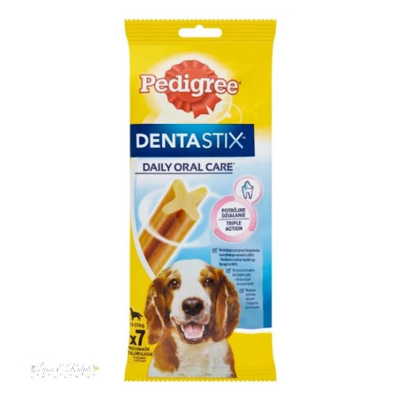 A Pedigree DentaStix egyedülálló X formájának és összetételének köszönhetően a napi használat során segít akár 80%-kal csökkenteni a fogkő lerakódását. Adjon kedvencének naponta ízletes Pedigree DentaStix-et hogy megőrizze fogai és fogínye egészségét. Praktikus egy hétre elegendő csomagolásban kétféle ínycsiklandó ízben.