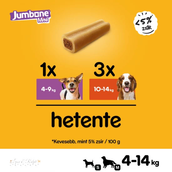 - Kistestű kutyáknak (4-10 kg) max. 1 rúd hetente.