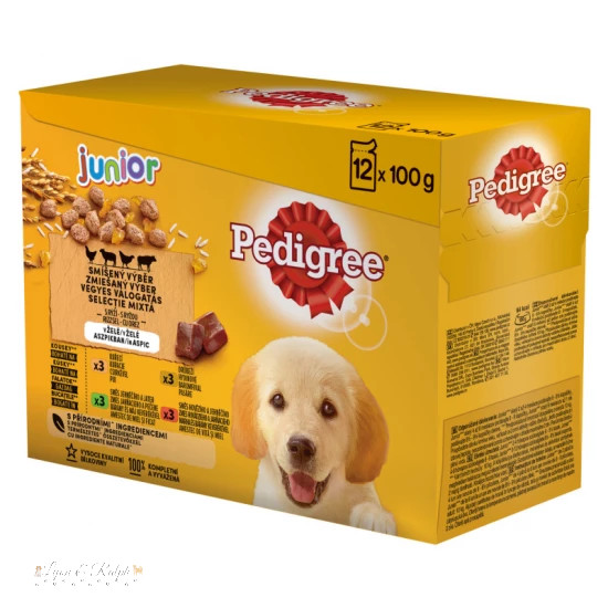 Pedigree Junior tasakos eledel ideális nedveseledelt kínál kölyökkutyáknak. A friss aszpikban mártózó, csirkéből, bárányból, marhából vagy szárnyasból származó, apró húsdarabok minden bizonnyal az Ön kis kedvence ízlését is megnyerik. A természetes ballasztanyagként rizzsel és vitaminokkal gazdagított nedvestáp teljes értékű, a fiatal kutyák szükségleteihez igazított táplálékot biztosít. Teljesen cukormentes, ízletes és jól tolerálható eledel kis kedvence életének első hónapjaira.