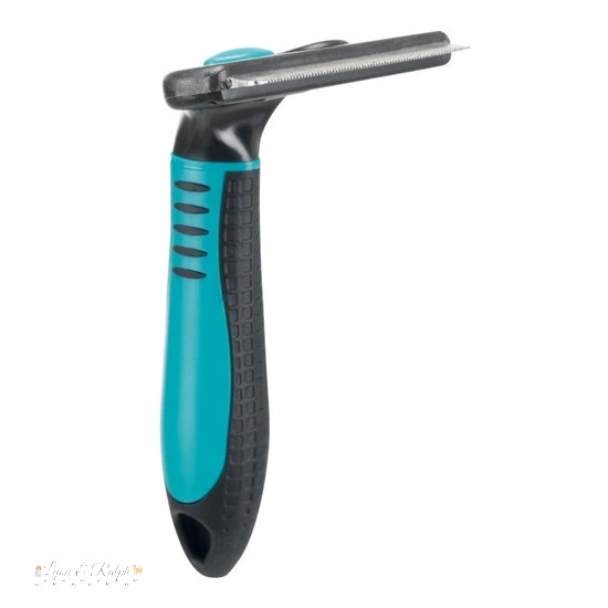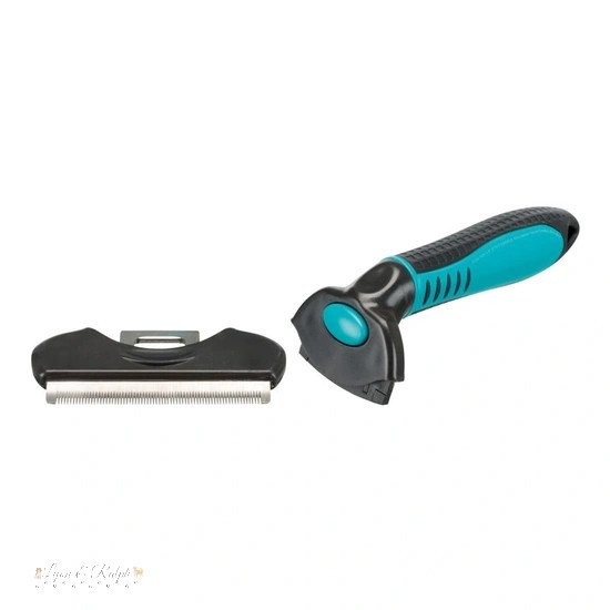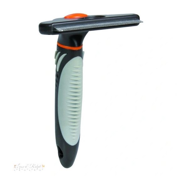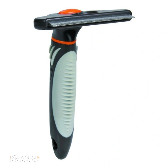 Cserélhető fejű fésű. Méret: 8x14cm. Használatával könnyedén eltávolítható az elhalt szőrzet. A kefe rozsdamentes acél pengéje egyszerűen cserélhető. A fogantyú műanyag, csúszásmentes gumi markolattal. Lovak szőrén is használható.