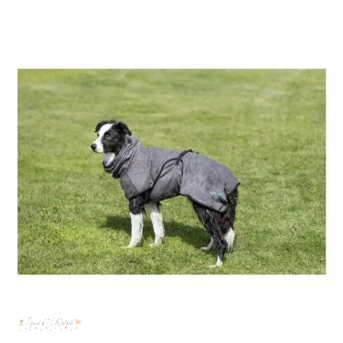 - Praktikus kialakítás: A köpeny magas gallérral rendelkezik, ami segít megszárítani a kutya fejét is.