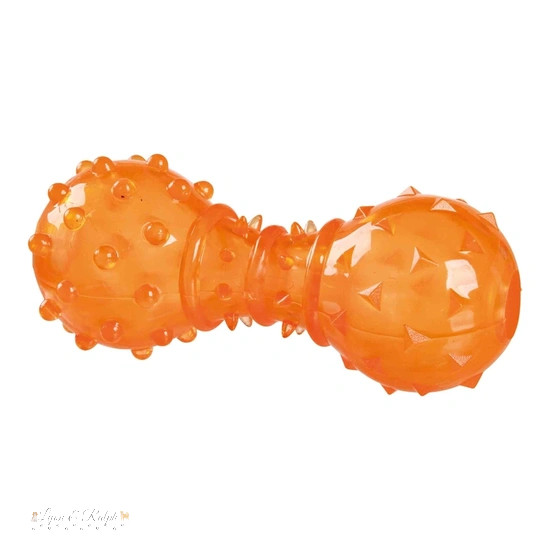 Ez a tartós, hőre lágyuló gumiból készült játék tökéletes választás a rágásra és a játékra vágyó kutyák számára. A csont formája kényelmes a kutya számára, a bordázott felület pedig masszírozza az ínyt és segít a fogtisztításban.