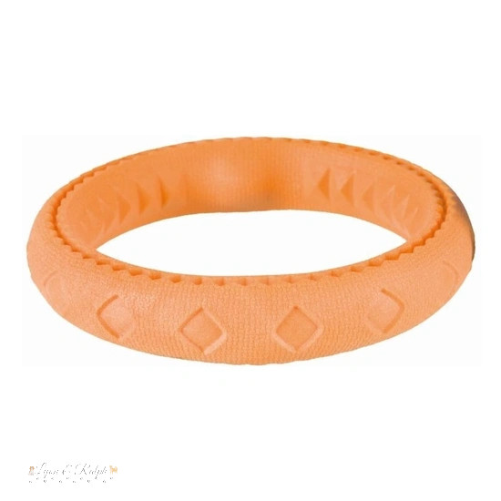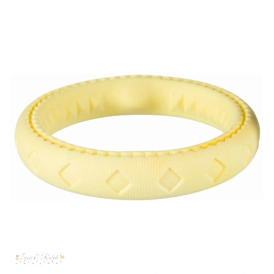 A Trixie Játék gumi karika hőre lágyuló 17cm egy strapabíró játék kutyák számára, mely vízen is úszik. Kiválóan alkalmas rágcsálásra, dobálásra és aportirozásra is.