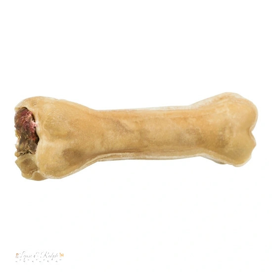 Jutalomfalat, szalámis töltött csont, kiegészítő eledel felnőtt kutyák részére, 2db/140g Összetevők: nyers marhabőr, pacal liszt, bikacsök darabok, szalámi aroma. Színezék (EU-adalékok). Analitikai alkotórészek: nyersfehérje 89,30%, nyerszsír 2,00%, nyersrost 0,30%, nyershamu 0,50%. Adagolás: jutalomként adható. Az állat előtt mindig legyen friss, tiszta ivóvíz!