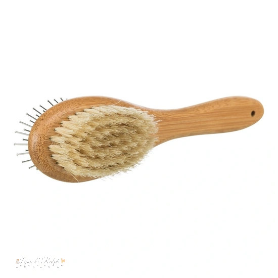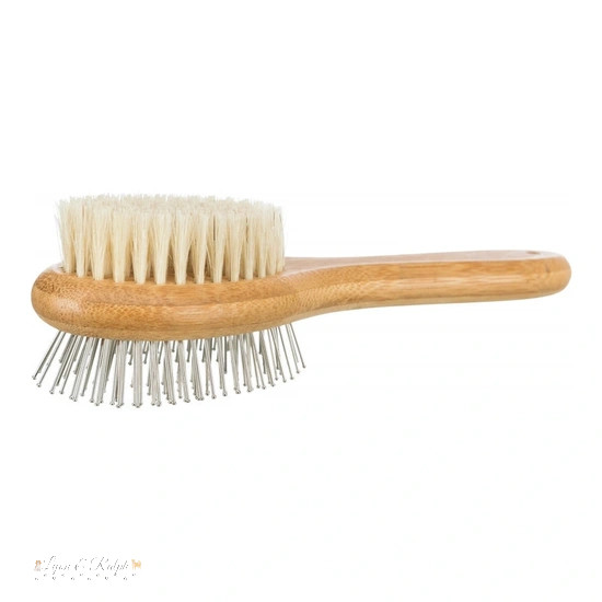 - Az egyik oldalon finom természetes sörték találhatók a kíméletes tisztításhoz, a másikon pedig fém tüskék a szőrzeti gubancok eltávolításához. Így minden szőrzet típushoz tökéletesen alkalmazható.
