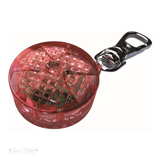 A Trixie nyakörvre, pórázra csatolható villogóval biztonságosabbak lehetnek a séták rossz látási viszonyok, vagy sötétedés közben. A piros villogó kb. 50 órás villogó fényt, vagy 25 óra folyamatos fényt biztosít. Az átlátszó, világító diódák minden irányba világítanak. Kis mérete miatt macskáknak is ajánljuk. Cserélhető elemek. Mérete: 2,5 cm, Színe: piros