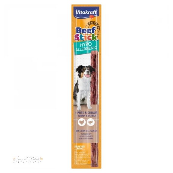 A válogatott fehérjék és szénhidrátoknak köszönhetően ez a Beef-Stick kiválóan alkalmas jutalomfalatként nehéz emésztésben és allergiában szenvedő kutyáknak. Pulyka-és strucchússal, rizzsel és burgonyával készült.