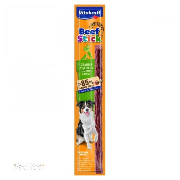 A Vitakraft Beef Stick zöldséggel kutyáknak kiegészítő táplálék kutyák számára.